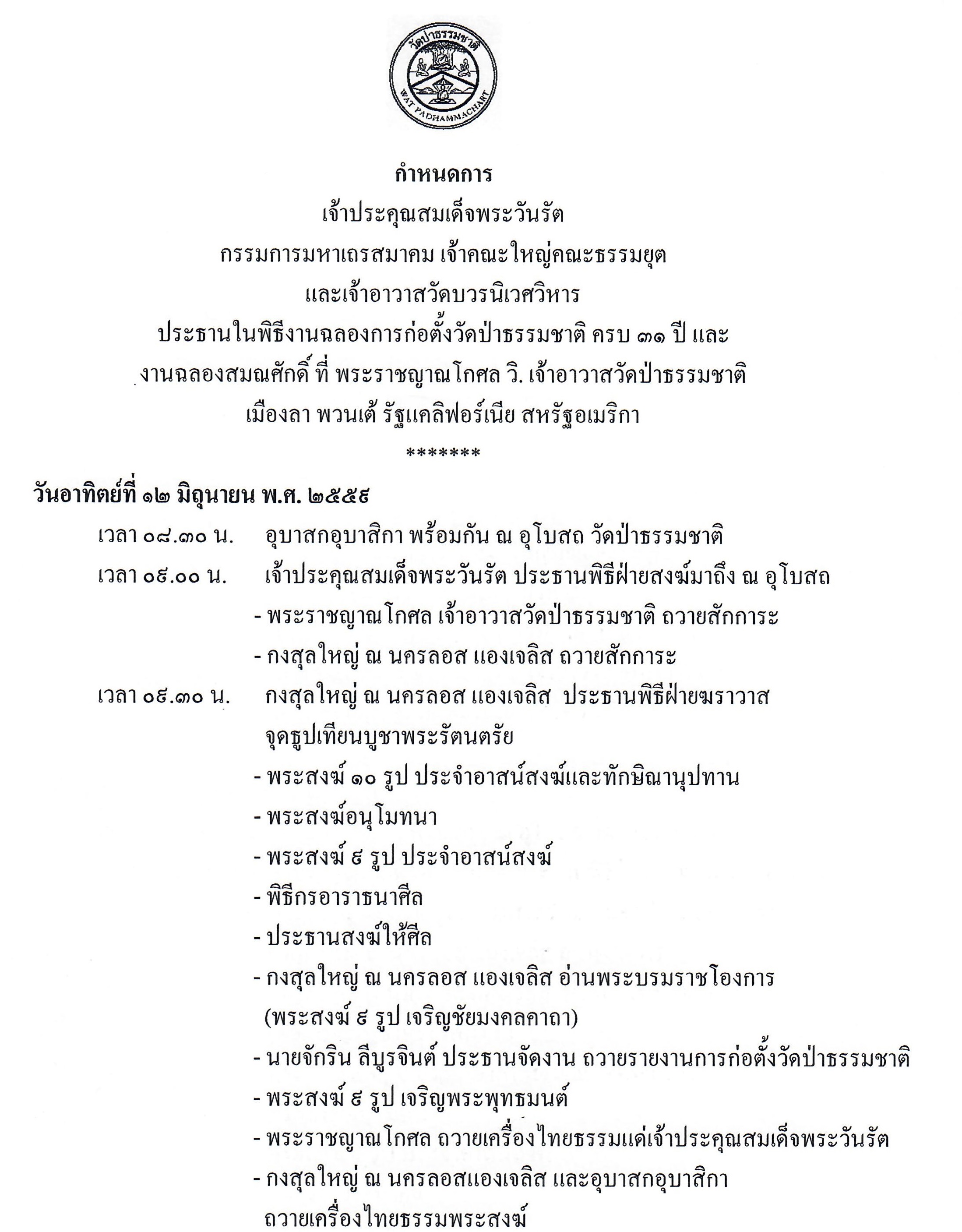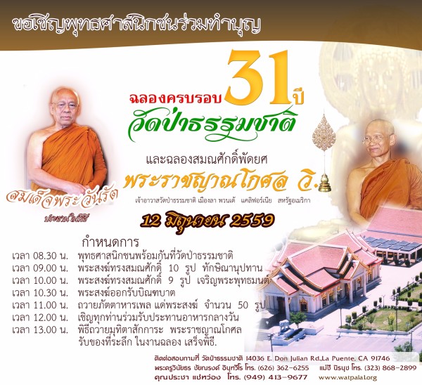 ร่วมงานสมโภชฉลองการก่อตั้งวัดป่าธรรมชาติ ครบ 31 ปี