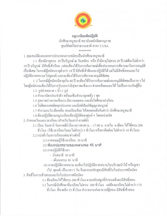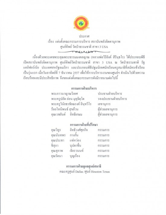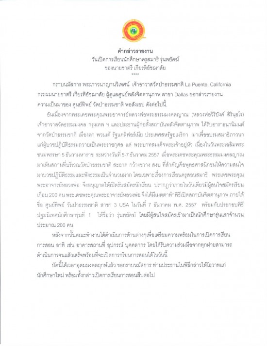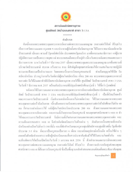 ศูนย์ทิพย์วัดป่าธรรมชาติ สาขา 3 USA รุ่น 1