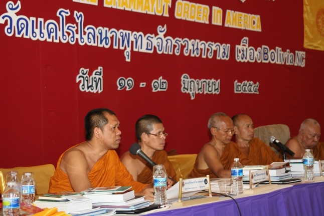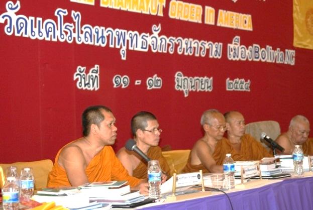 วาระที่ ๑ประธานกล่าวเปิดการประชุม พระธรรมเมธาจารย์ จุดธูปเทียน กล่าวนำคำบูชาพระรัตนตรัย อ่านพระโอวาท สมเด็จพระญาณสังวร สมเด็จพระสังฆราช / กล่าวเปิดการประชุม พระราชสิทธิโมลี ประธานสงฆ์ในประเทศสหรัฐอเมริกา กล่าวถวายรายงานและต้อนรับผู้เข้าร่วมประชุม พระวิธูรธรรมาภรณ์ เจ้าอาวาสวัดแคโรไลน่าพุทธจักรวนาราม กล่าวต้อนรับ ผู้แทนสำนักงานพระพุทธศาสนาแห่งชาติ กล่าวถึงงบประมาณในการบริหารคณะสงฆ์ พระธรรมทูตในต่างประเทศ และเงินสนับสนุนจากรัฐบาล ดร. อำนาจ บัวศิริ รองผู้อำนวยสำนักงานพระพุทธศาสนาแห่งชาติ ได้กล่าวถึงงบประมาณ ที่ได้รับจัดสรร เพื่อถวายแต่ละวัดที่ผ่านมติที่ประชุมคณะสงฆ์ธรรมยุตในประเทศสหรัฐอเมริกา ทั้ง ๗ วัด จะได้ดำเนินการ The Mayor of Bolivia City give express ขอแสดงความยินดี และชวนให้มาเยี่ยม ชมสถานที่ต่างๆ ของเมืองโบลิเวีย
